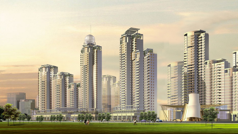 本地塊由35幢板式高層組成,高度控制在100米以下。沿東新路設(shè)計成商業(yè)街,設(shè)置了中央會館、商場、超市、餐飲等配套。南北各設(shè)一個健身中心,游泳池結(jié)合會館布置。