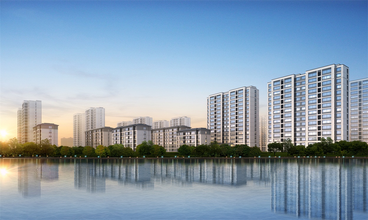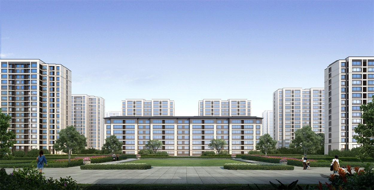 項目位于天津市寶坻區(qū)西部新城板塊,東至望月路,南至南環(huán)西路、天津市寶坻區(qū)水務局,西至新倉路,北至景苑街。規(guī)劃用地面積約12萬平方米,總建筑面積約31萬平方米,基地內分高層和洋房兩種業(yè)態(tài)。因地制宜,充分利用地塊條件,內部空間采用相對對稱的布局方式,南側沿河區(qū)域布置洋房,形成了較為適宜的城市景觀天際線。